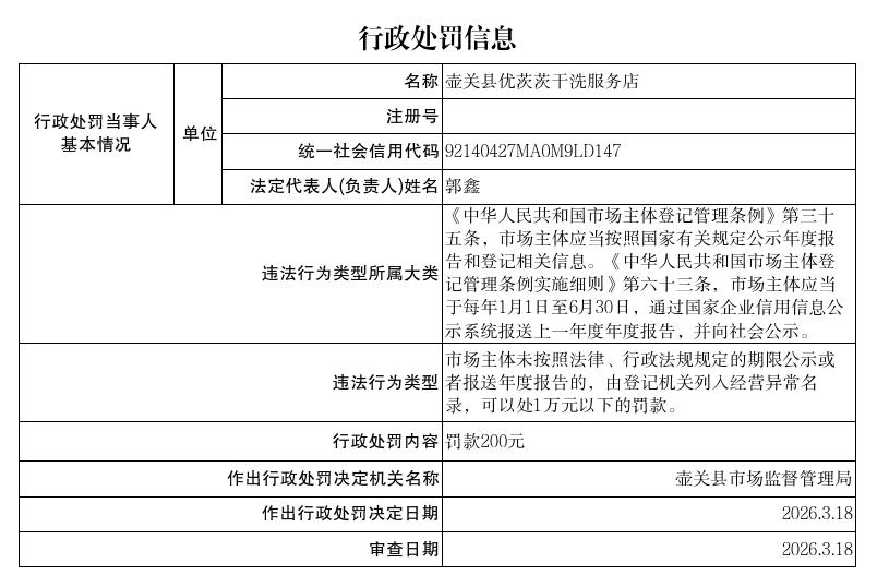 壶关县优茨茨干洗服务店