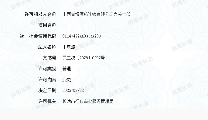 山西育博医药连锁有限公司壶关十部