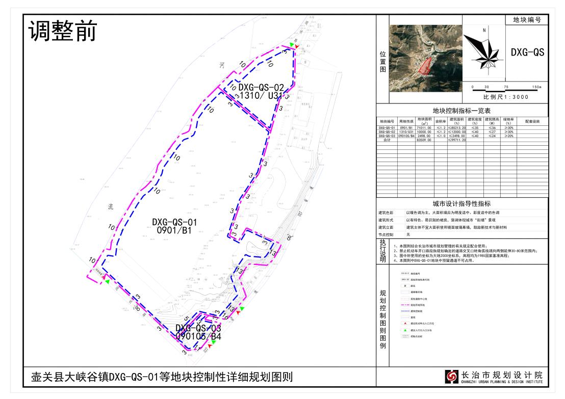 本次壶关县大峡谷镇DXG-0S-01地块控制性详细规划调整项目涉及原《壶关县大峡谷镇DXG-QS-01等地块控制性详细规划》中DXG-QS-01地块。该地块周边道路情况为:南为现状道路,东侧为327省道。