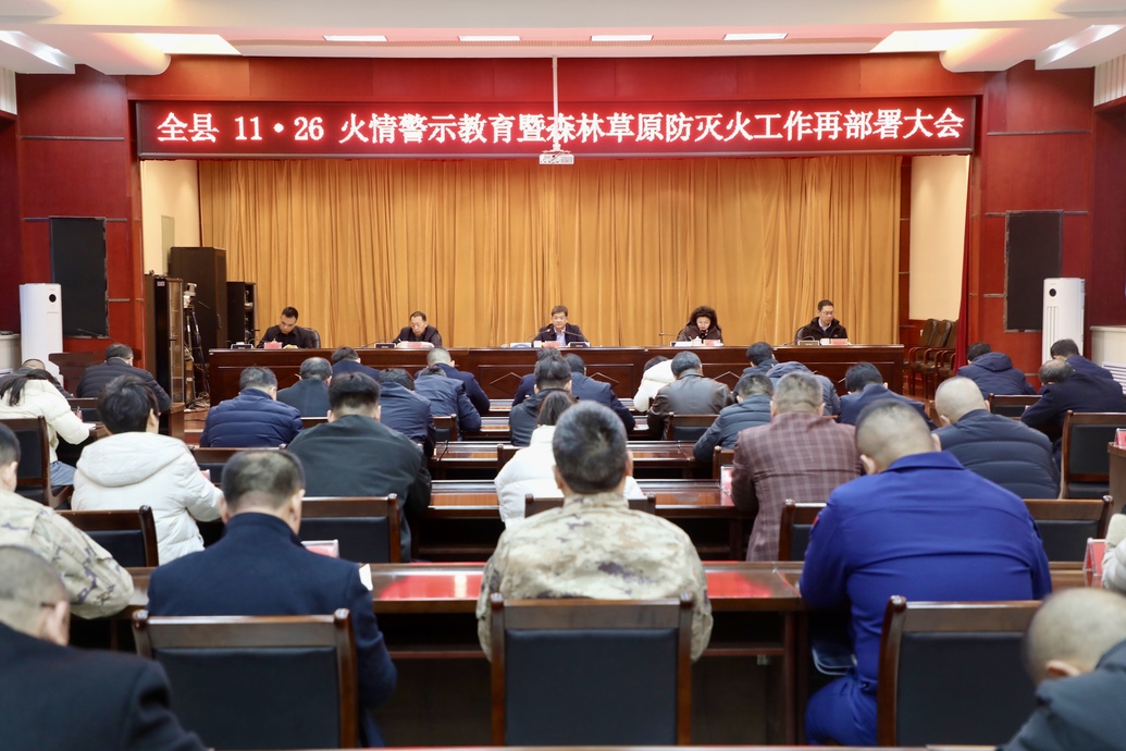 12月2日,全县11·26火情警示教育暨森林草原防灭火工作再部署会议召开。县委书记张宏方,县委副书记、统战部部长翟睿,县委常委、常务副县长李珍明,县委常委、纪委书记、县监委主任梁晨玮,副县长冯海岗出席会议。